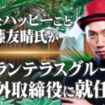このたび、グランテラスグループは『REAL VALUE』など多方面で活躍されているトモハッピー(齋藤友晴)氏を、社外取締役として迎えることとなりましたので、お知らせいたします。